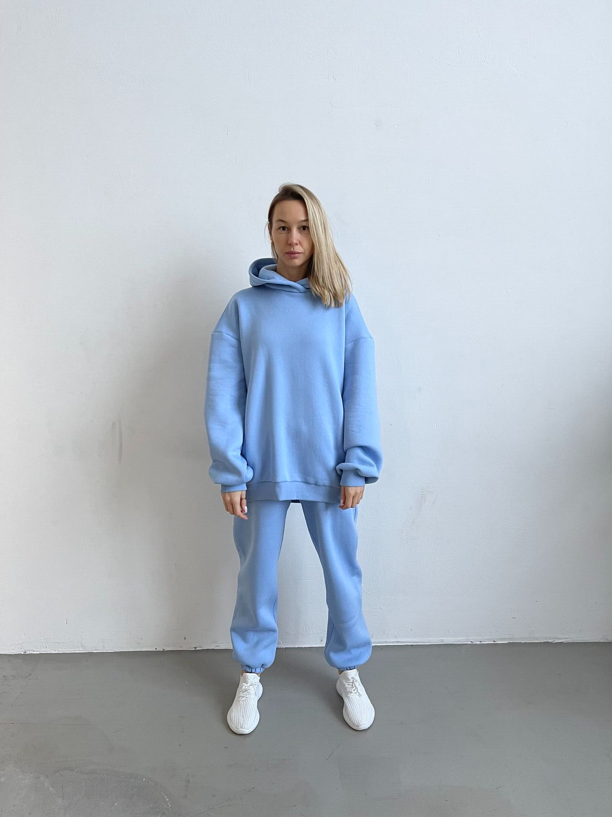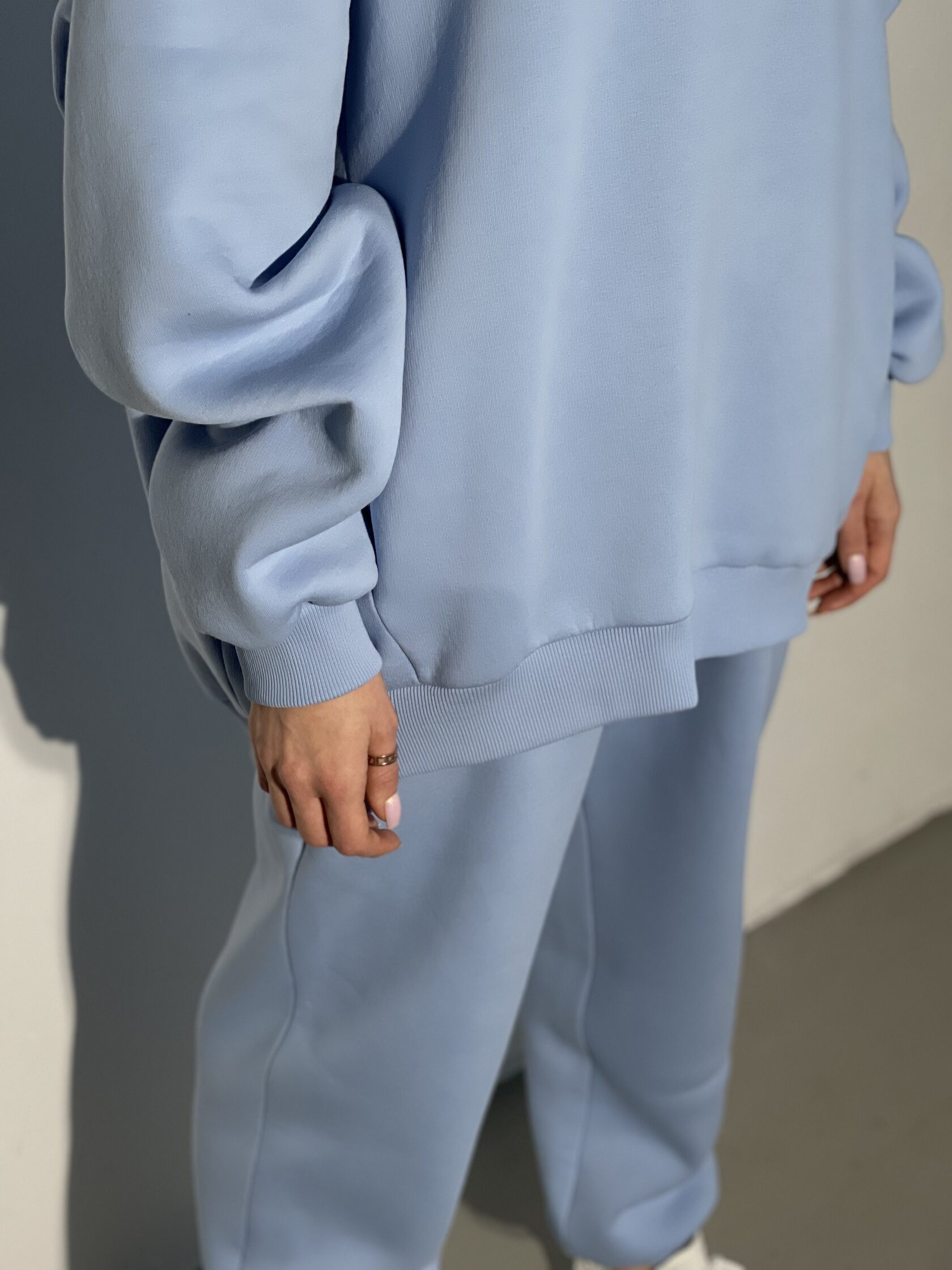 Спортивные брюки-джоггеры, худи очень большого объема, с капюшоном Джоггеры отшиваем в двух ростовых группах: 165-169 см и 170-177 см Материал - футер с начесом Небесно-голубой цвет